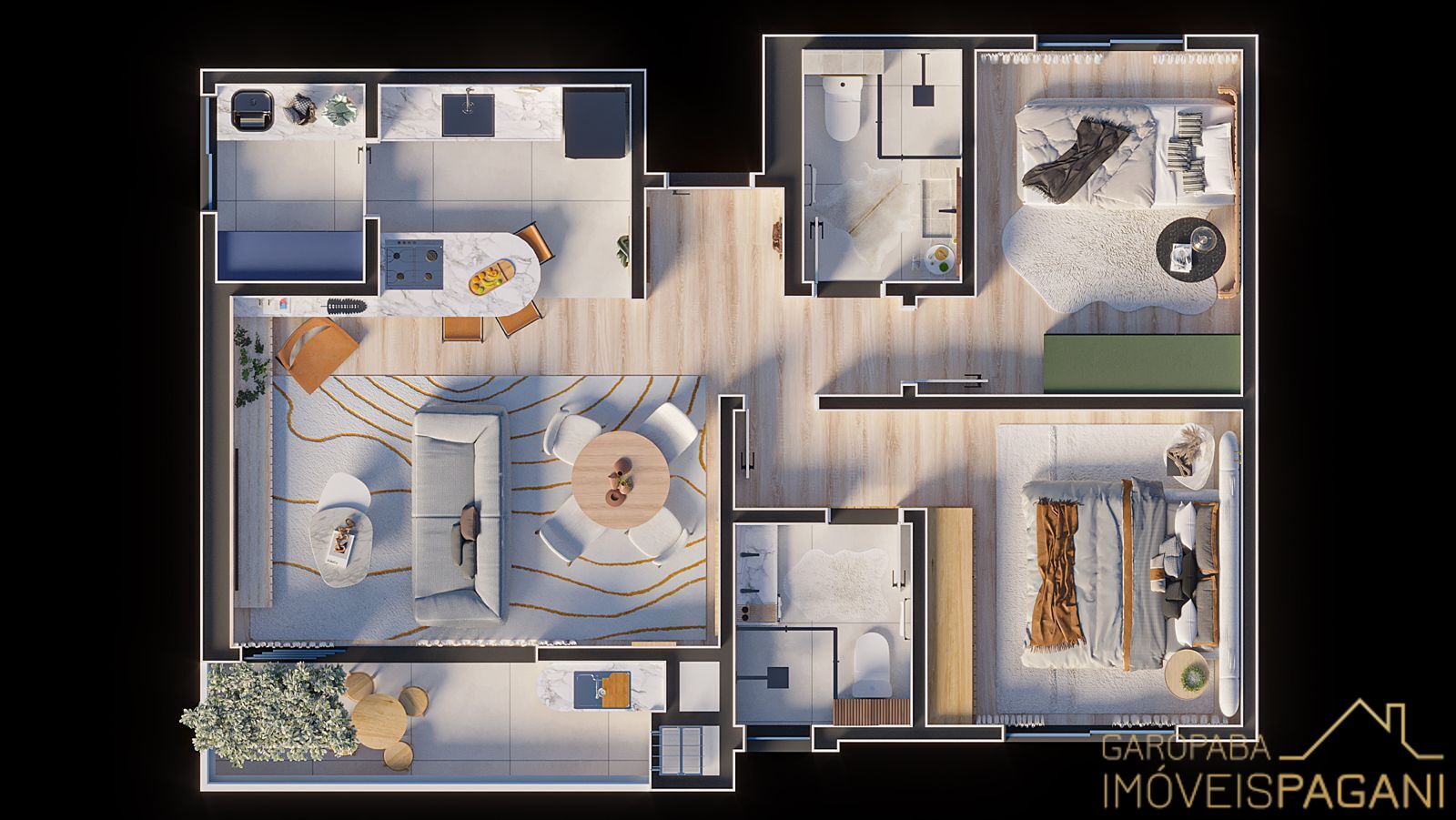 2 Dormitórios, sendo 2 suítesGaragens